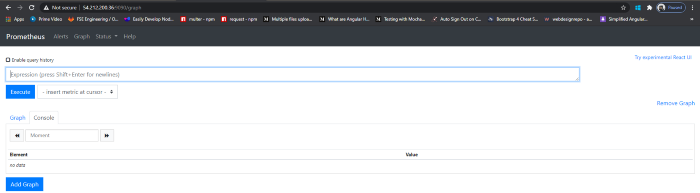安装非常简单,执行这些命令将会让 Prometheus 服务器在端口 9090 中运行。Prometheus 在端口9090上的仪表板如下图所示: