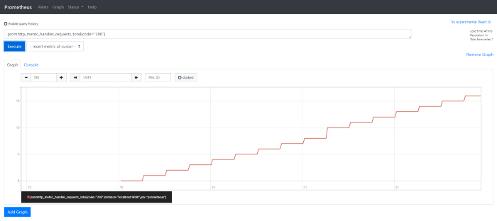 导入完成后,我们会看到基于其表达式和时间范围的图表。你可以通过将时间范围减少到 5 分钟来深入了解。