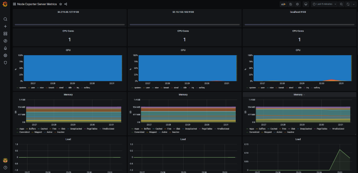 所以在上面的图片中,我们可以看到所有三个节点 exporter 的数据都被可视化了。