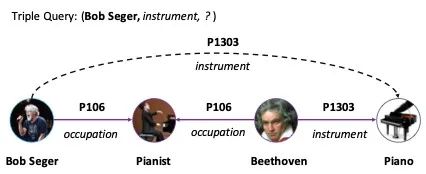 图1. 知识图谱补全多跳推理样例,来源于[3].