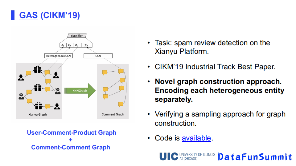 19年底的GAS (CIKM’19)来自于阿里巴巴集团的咸鱼APP 团队,它是用来检测咸鱼平台上的虚假评论,这篇文章在后续会详细介绍。