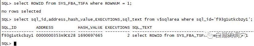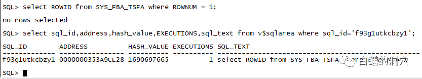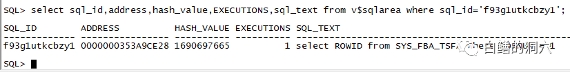 这时候我们在v$sqlarea中找不到这条SQL了。如果我们再次执行会怎么样呢?