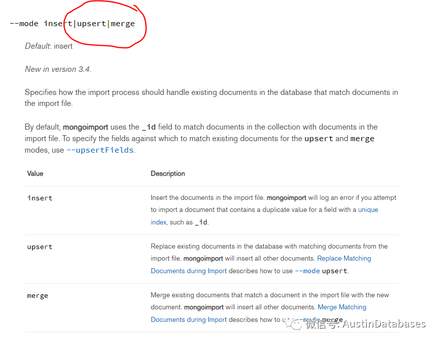 举一个例子,当数据从一个表,要进入另一个表,并且有些字段还有取舍,同时由于数据可能有重复性,也就是_id 可能有重复的可能,这时你能选择的大概率是 mongoimport mongoexport , 通过下图的选项你可以让那些重复可能有冲突的数据“安安静静”的听你的指挥,至少你可以有选择,如果你使用dump resotre 那就........