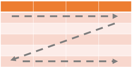 当需要展示更多的数据时,表格或图形一般来说是好的选择。但需要注意的是,表格形式具有其特殊性,其与我们口头表达系统交互方式类似,这意味着我们是会阅读表格。当面前有一张表格时,通常会用到食指:我会一行一列地读,并且比较每个格子里的值。