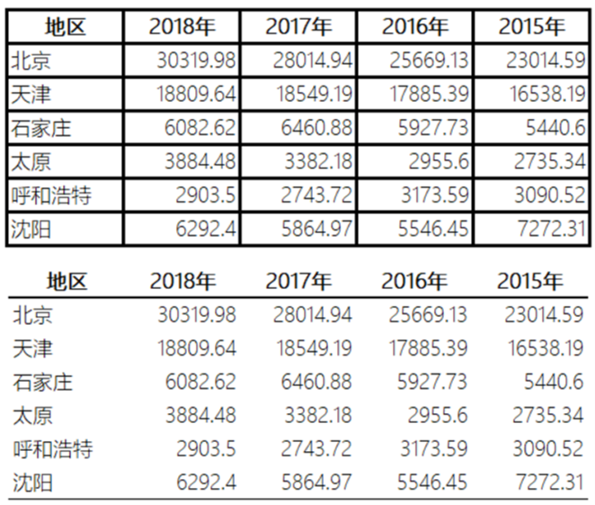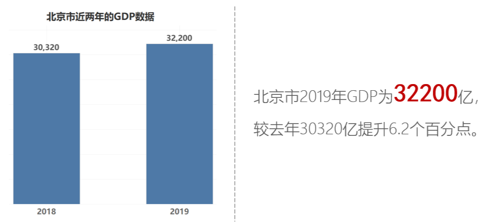 在用文本表达数据时,有时是需要将数据收敛归纳出一、两个结论性数据来展示,但此时需要考虑信息失真的问题。例如上面例子表述为“2019年GDP比2018年增加1880亿或增长了6.2%”,这种就会产生数据失真问题。丢失了数据原有部分信息,应避免这种情况。