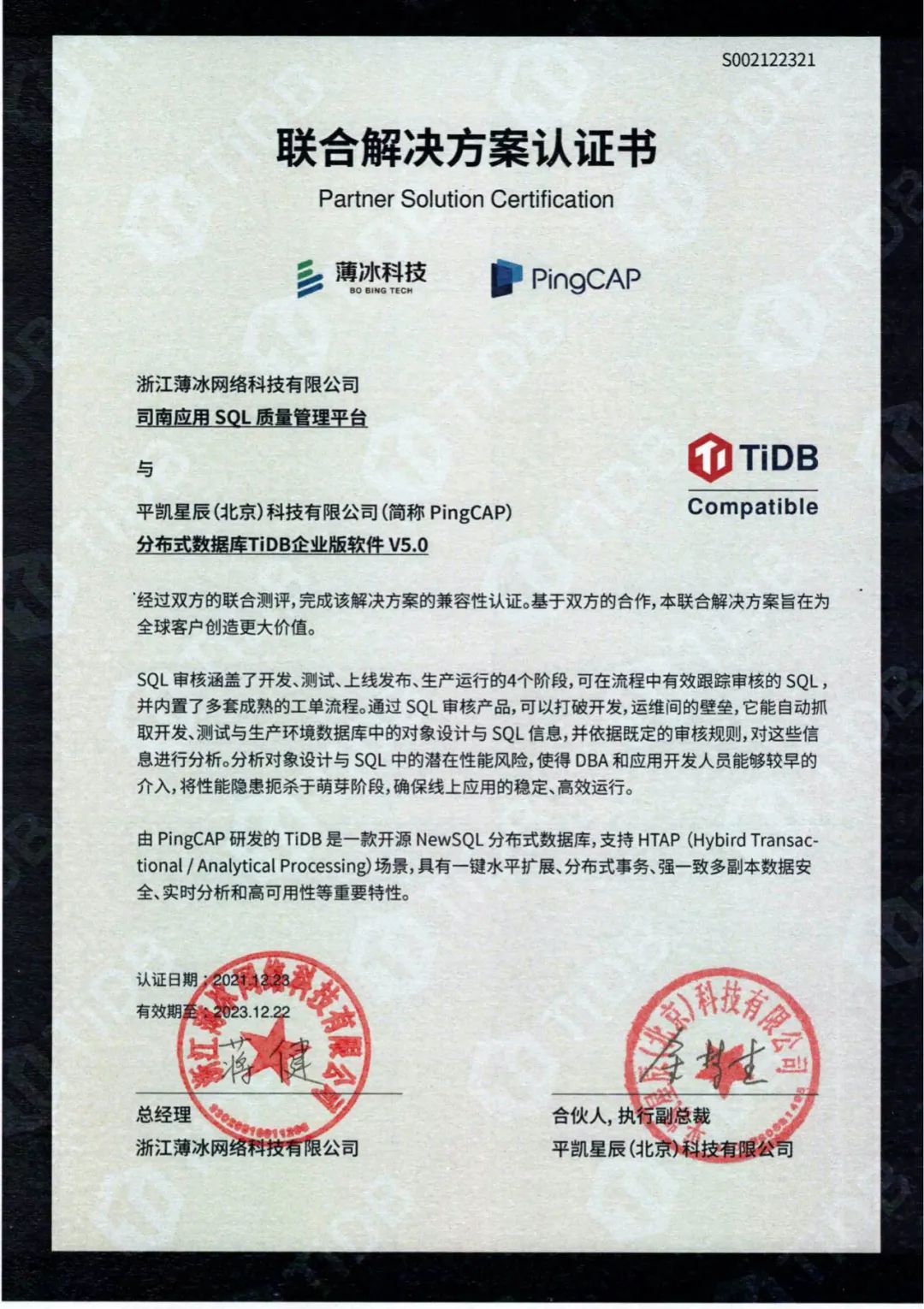 在数字化发展的大趋势下,为积极响应国家信创战略,共同推动国产化生态建设进程,薄冰科技积极携手Oceanbase和PingCAP在产品技术兼容、服务能力互补、人才培养等方面持续展开密切合作。