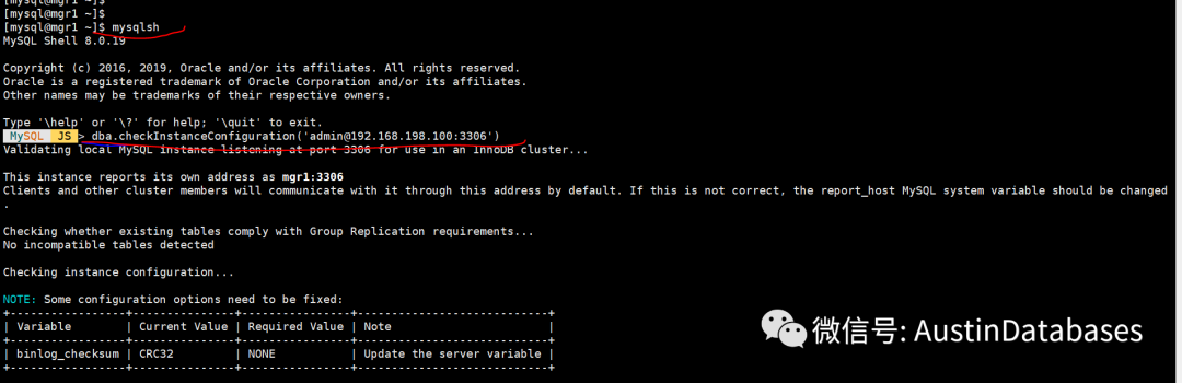 1 我们先对我们的单机的 mysql 进行检查,看看我们的配置哪里还有问题(针对innodb cluster)