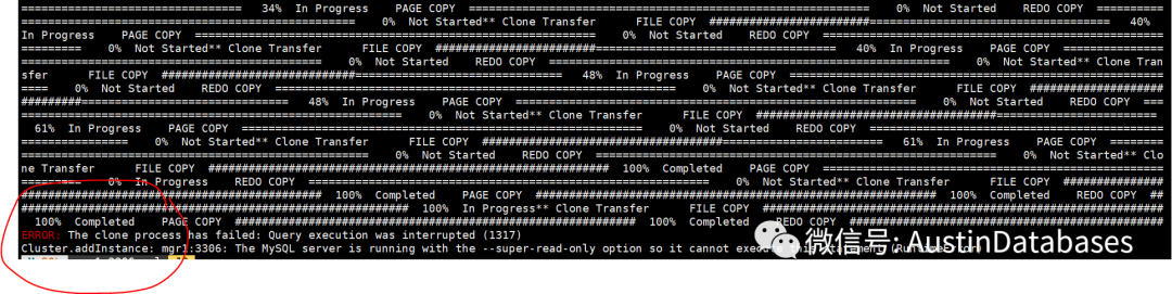 报错了,原因也找到了,是我其中一台机器和其他的机器(primary 和standby 的小版本不同导致,虽然都是8.019,但percona 和 社区版是无法之间是无法使用 clone的功能的)。