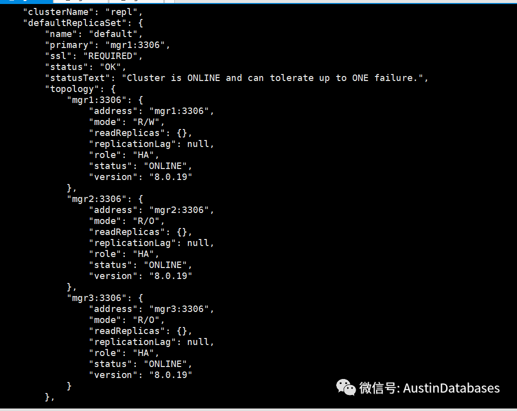 关键就是差者两句,应该是所有的节点都要安装插件,然后需要在standby节点设置,允许standby节点能接受来自mgr1节点的数据,否则无法添加节点,进入到集群中。做完这两句在mgr 2 mgr 3 后,整体的工作就很顺利了。
