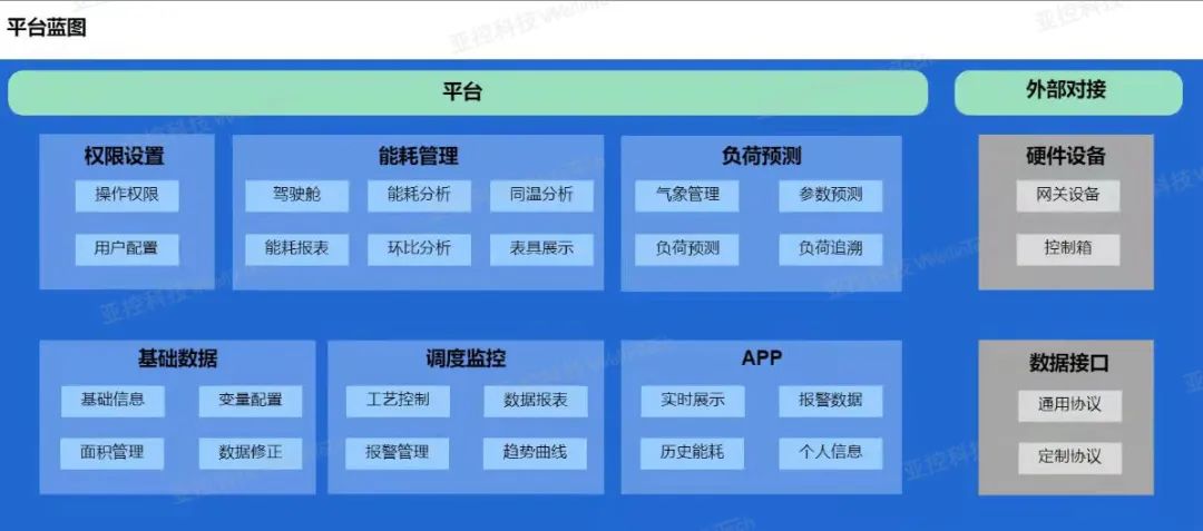 系统整体建设以下功能模块:热网自动监控系统、指挥调度系统、能耗分析系统、中央总控台、掌上供热 APP、设备管理系统、地理信息系统、运维管理系统。