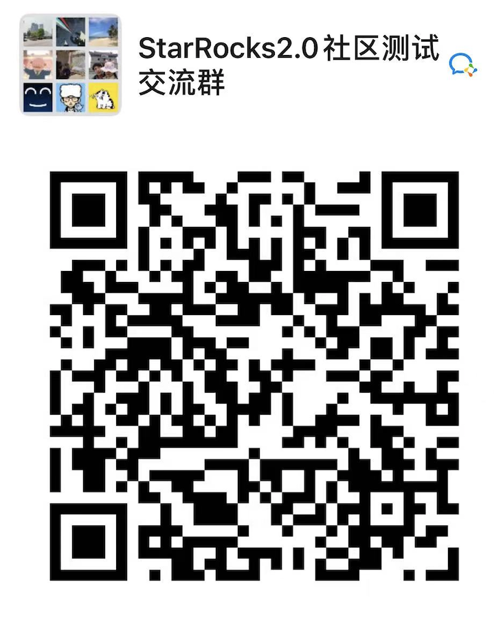 扫码加入即报名: 【StarRocks 2.0 社区测试交流群】