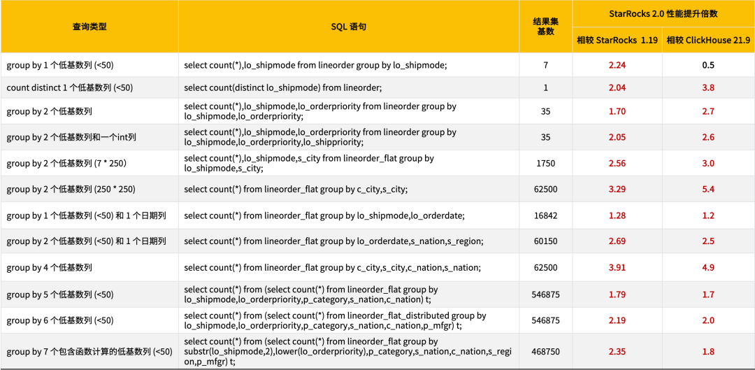 2022年1月5日 StarRocks 2.0 版本发布!在2.0版本中,StarRocks 创新性的实现了基于全局字典的低基数字符串查询优化,进行了大量 CPU 指令级优化。