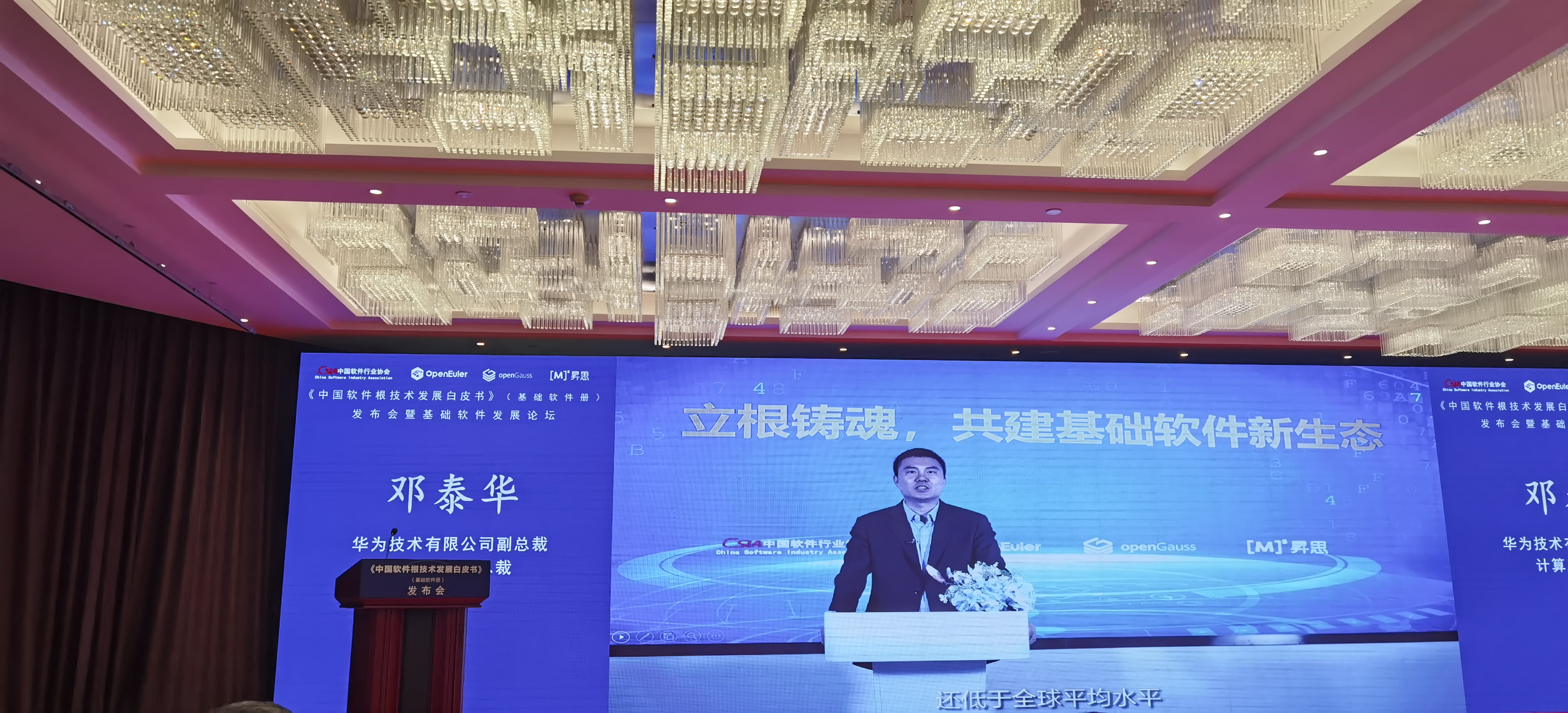 华为计算产品线总裁邓泰华致辞表示,华为通过开源 openEuler、openGauss 等基础软件,连接产业研发人员、企业、生态伙伴,以开源开放,立根铸魂,共建基础软件新生态。