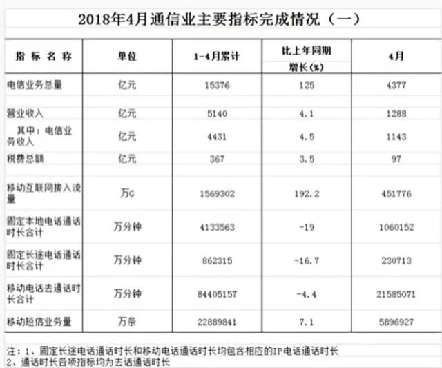 2018年4月,从工信部的一份截图来看,运营商短信业务出现了增长苗头,移动短信业务量上升了7.1%,而电话业务却出现了下滑。电话业务出现下滑状态,主要还是因为互联网电话APP的出现以及微信等社交软件带来的冲击。