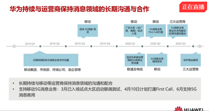 在华为消费者业务云服务商业消息产品经理白鹤立看来,5G作为下一代信息技术的消息服务,除了提供多媒体体验外,更重要的是为用户提供交互式信息体验。华为表示,将持续与运营商保持消息领域的长期沟通与合作,共同做大“5G消息”新生态。