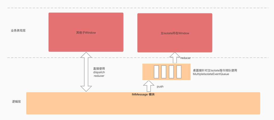 PC 与移动端大部分业务逻辑可复用,但是仍然有少量渲染流程存在差异,最多遇到的情况是多个子窗口同时向主窗口发送消息,这些消息在主isolate中会被加入 event queue,消息量过大的话,就会使得主 isolate event queue 中事件过多,容易造成主isolate所在页面卡顿。