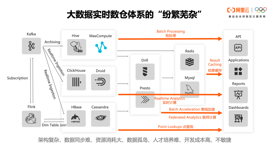 传统上,这样的业务是由HBase、Redis这样的NoSQL系统或者MySQL、PostgreSQL等数据库RDS来承接的。但NoSQL的问题是分析能力普通偏弱,而数据库问题是写入性能和规模有限制。