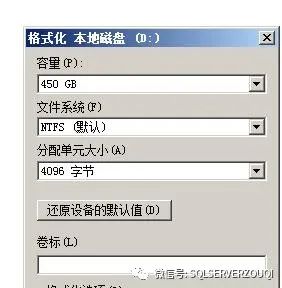 高级格式化:操作系统对文件系统盘符进行格式化,规划每分配单元/簇大小,默认4KB