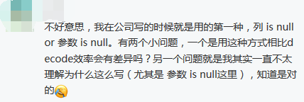 问题2:对第一种写法的理解,尤其是参数 is null?