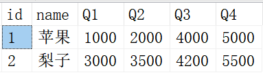 insert into test2 values(2,'梨子',3000,3500,4200,5500)