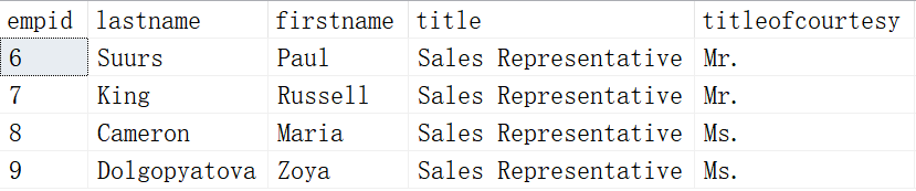 title在和titleofcourtesy进行拼接后符合条件的就只有ID为6,7,8,9的了