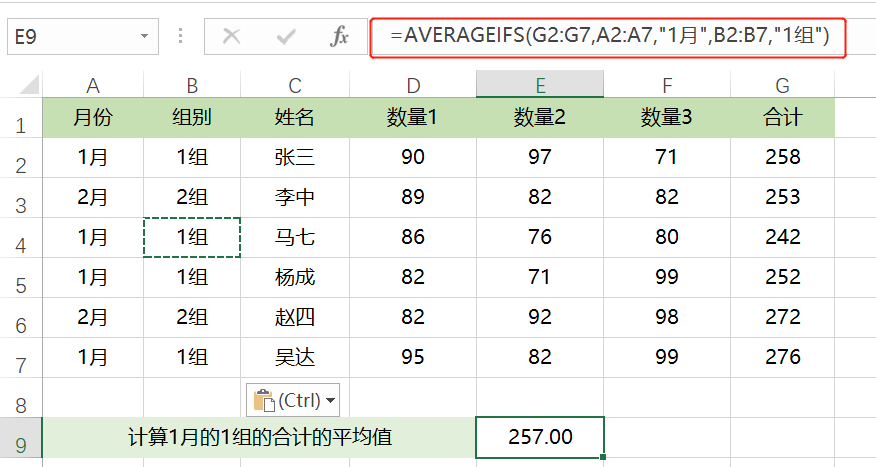 AVERAGEIF函数是返回某个区域内满足给定条件的所有单元格的平均值(算术平均值)。求下面的1组的合计的平均值,在E9单元格中输入公式:=AVERAGEIF(B2:B7,"1组",G2:G7),确定下拉即可。AVERAGEIFS函数是用于返回多重条件所有单元格的平均值。=AVERAGEIFS(求值区域,条件区域1,条件1,条件区域2,条件2……)求下面的1月1组的合计的平均值,在E9单元格中输入公式:=AVERAGEIFS(G2:G7,A2:A7,"1月",B2:B7,"1组"),确定下拉即可。小伙伴们,学会了没有,以上的函数都有一个共同的特点就是,结构基本上是一样的,所以学起来呢,很简单,只要记住简单的套路即可。——End——