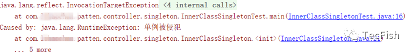 如果是单例的话,输出应该是true,但是实现输出结果是false。这就是反射入侵,如何防止呢?修改代码如下: