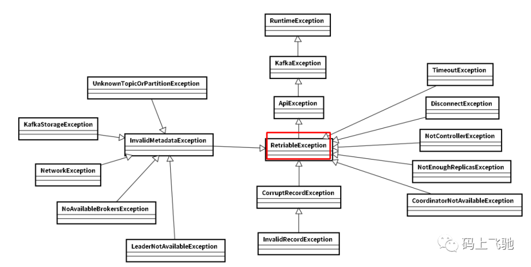 异常是RetriableException类型或者TransactionManager允许重试;RetriableException类继承关系如下:
