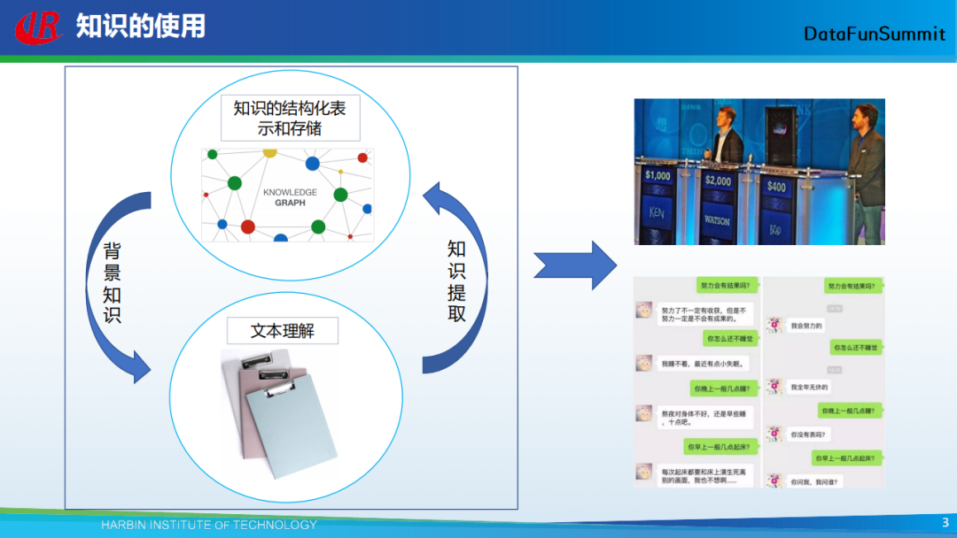 对于知识的使用一般有两种方式,一种是从文本中抽取知识,并将其形成结构化的知识库;另一种是通过知识图谱帮助我们更好地去理解文本。我们还可以将知识更好地应用于对话、问答等上层应用。今天我的报告主要从如何从非结构化的文本中抽取知识,形成知识库这一方面来展开。
