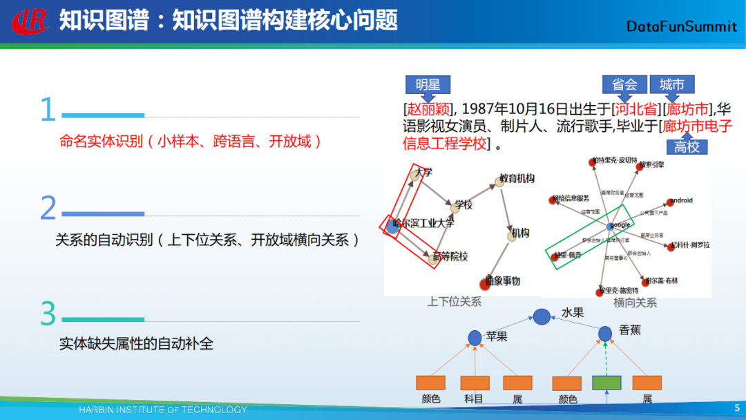 以上讲述了关系抽取。在知识图谱中,实体有相应的描述信息,即它的属性。接下来,将给大家简要介绍如何去找实体的属性。
