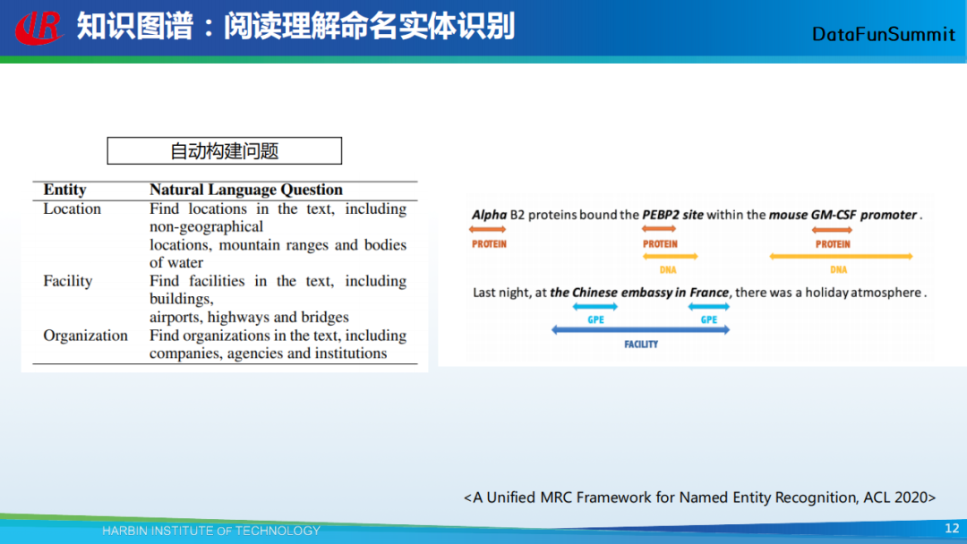 结合上述方法,我们就可以去识别嵌套的命名实体。通过提出不同的问题,就可以得到不同类型的实体,进而解决嵌套实体的问题。这里面也留下了一个问题,即我们如何去构建相应的问题。由于我们需要识别的实体类型还是比较多的,那么如何才能根据不同的实体类型构建相应的问题。针对这一问题,上图为我们提供了一些思路,我们可以写一些模板,进而根据实体的类型自动构建相应的问题。