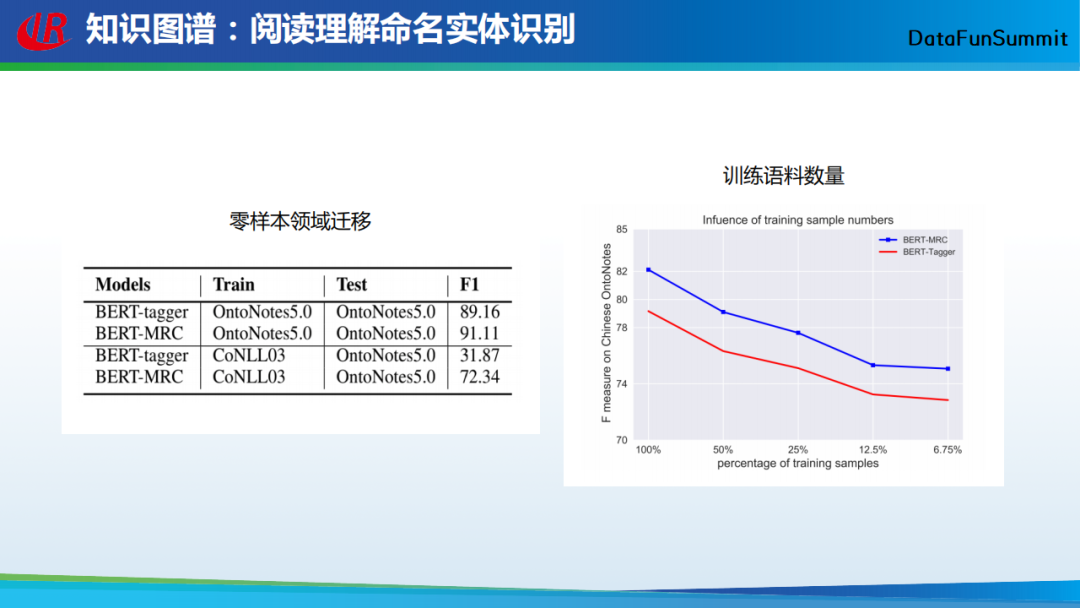 以上为这篇文章的实验结果,在零样本的领域迁移实验中,作者在一个语料上训练,在另外一个语料上测试。从实验结果中可以看出,相较于预训练模型,基于阅读理解的方法取得了不错的性能提升;在对训练语料需求数量的实验中,可以看出,该方法所需的训练语料数量明显降低。通过以上两个实验可以得到一个直观的结论,即基于阅读理解框架的命名实体识别方法可以在少量训练语料的前提下获得高质量的结果。