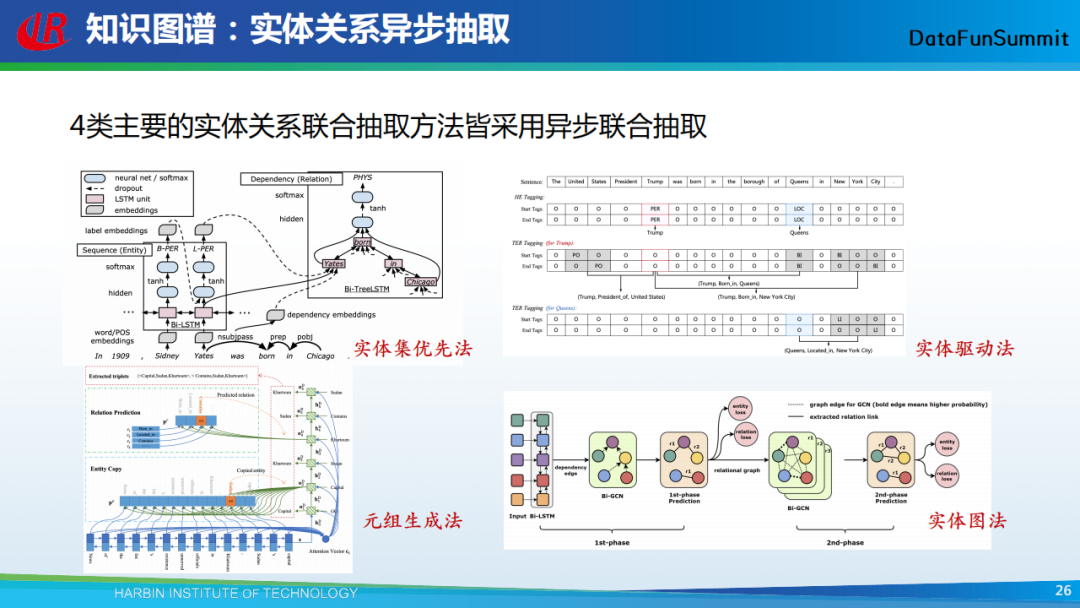 在知识图谱构建的过程中,主要就是挖掘实体及其关系,然后将它们组织成关系三元组。之前给大家讲的方法均采用的是异步抽取的方法,即将实体关系的抽取分为两个阶段,首先抽取实体,然后抽取实体间的关系,这也是当前的主流抽取方法,如上图中提到的实体集优法、实体驱动法、元组生成法和实体图法。