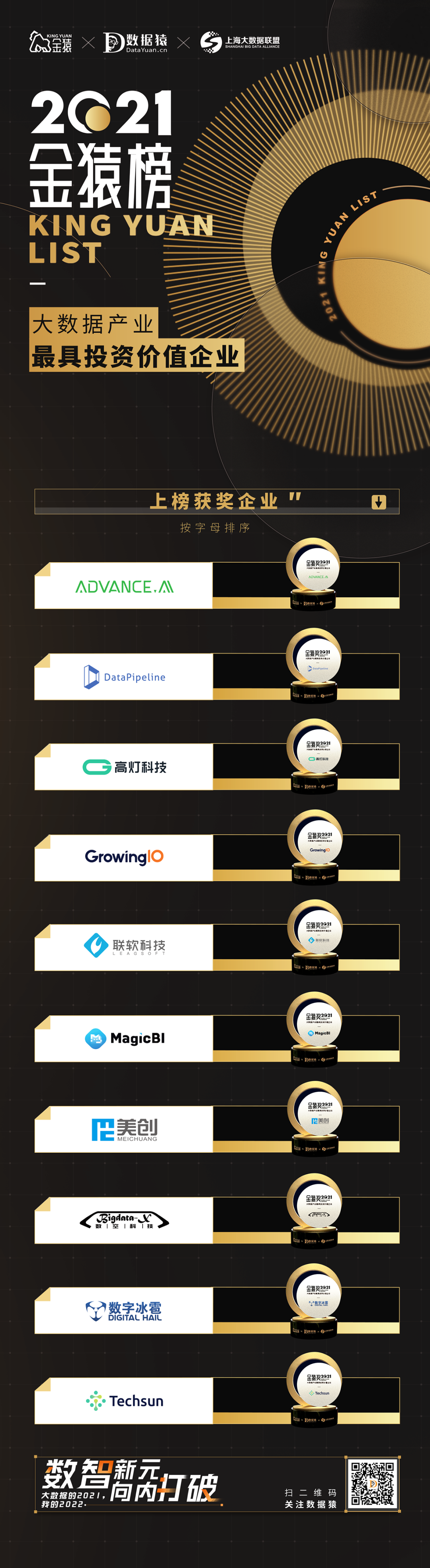 本次上榜的人物、企业、产品、投资、技术,数据猿全部颁发奖杯(技术奖项还获颁一份荣誉证书)予以鼓励,并在数据猿20多个国内外传播渠道,以及外部100多家合作媒体同步全网传播,面向包括金融、医疗、消费、 工业、娱乐等在内的全行业,展示大数据与人工智能、云计算、物联网、区块链、5G等新技术结合下的落地应用与发展潜力。