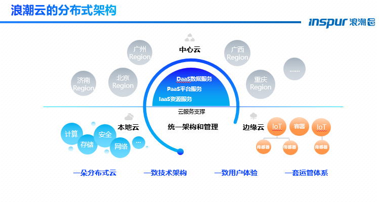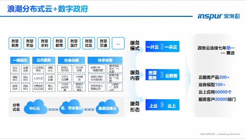 目前浪潮分布式云已围绕政企数字化转型和产业升级,通过中心云、本地云和边缘云的全域协同具备了在不同位置为用户提供一致体现的云服务能力。