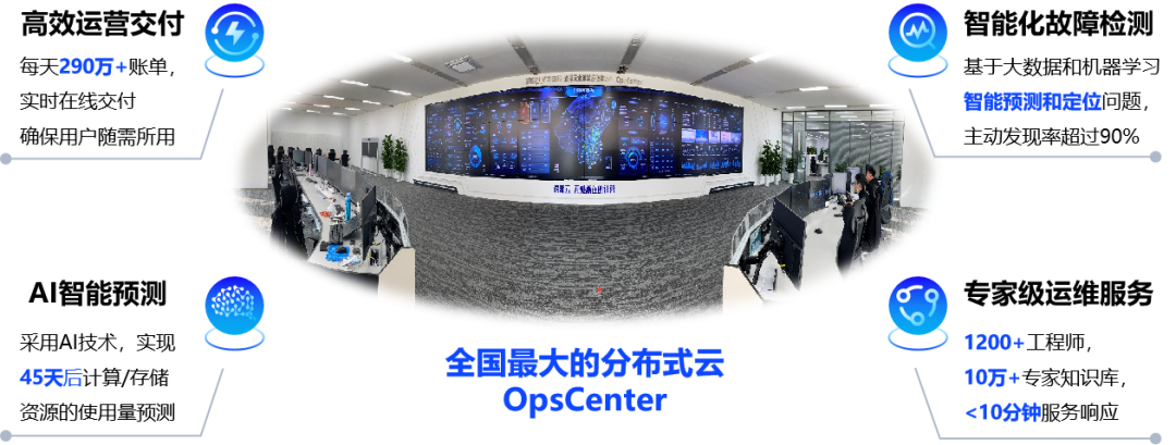 面对多源异构的海量数据,拥有采存算用的一体化数据智能解决方案服务能力,并可在标准、技术、管理等全维度提供数据安全保障。同时浪潮云建立了OpsCenter全球运行中心,通过7×24小时的实时运维运营保障,实现了全国最大分布式云的稳定运行。