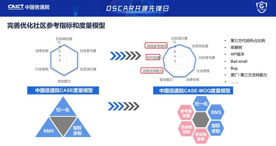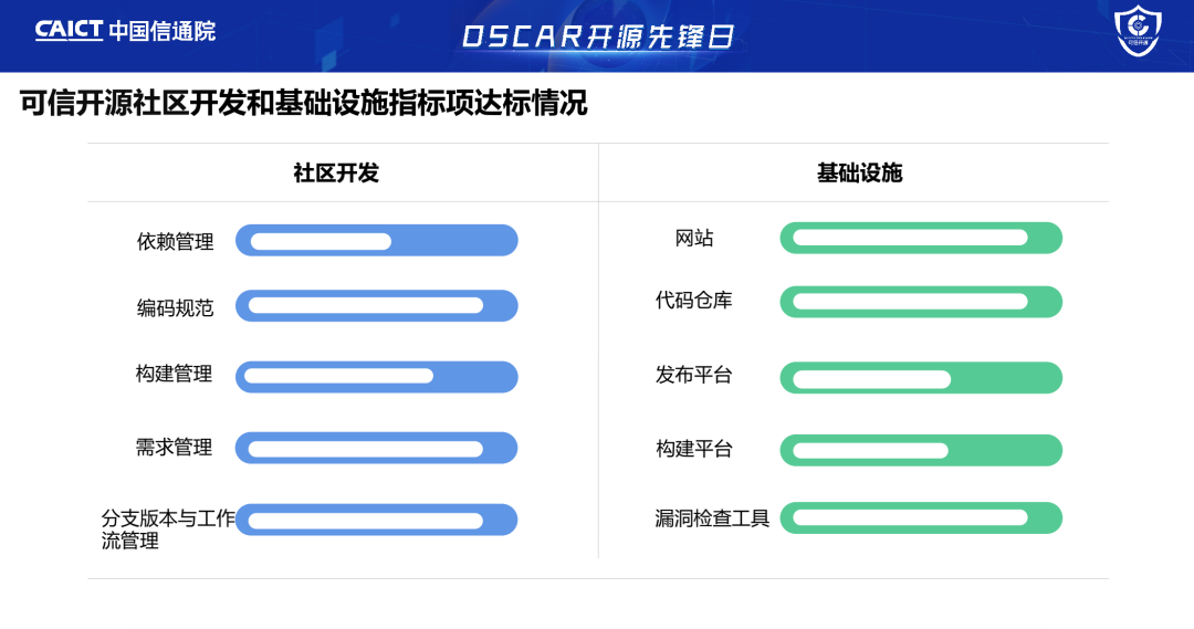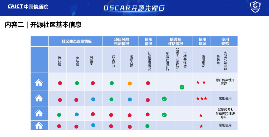 随着近些年开源技术的广泛应用,我国开源生态不断发展扩大,开源项目层出不穷;组织与个人对如何构建活跃的开发者生态,营造健康可信开源社区的关注度越来越高。针对水平不一的市场参与者,中国信通院持续推动开源项目与社区治理类评估,对开源项目的健康程度与可持续性展开评测,以降低开源项目的安全风险,完善开源项目的开发者、用户生态;同时对开源社区的治理、运营、开发过程进行评测,帮助开发者构建可信的开源社区。