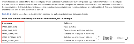 dbms_stats包可以收集数据库、数据字典、索引、表 等的统计信息。