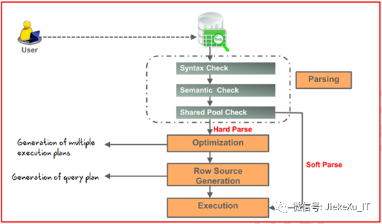 rowsource行源:在查询中,由上一操作返回的符合条件的数据集,它可能是整个表,也可能是部分,当然也可以对2个表进行连接操作(join)最后得到的数据集。关于硬解析、软解析可查看前面一篇文章。
