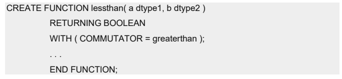 句。在 WITH 子句中,您可指定 COMMUTATOR 或 NEGATOR 函数。其他修饰符是用