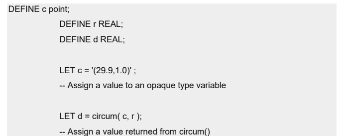 点和半径,您可为每一变量编写变量声明。在下图中,c 是一个 opaque 类型变量,d 保存