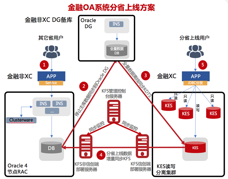 通过应用访问入口统一控制:分省上线用户将只访问金融XC OA,其他省用户只访问金融非XC OA;在不改变OA业务处理流程及分省上线策略的前提下,满足金融OA的跨省审批业务流程,且产品技术相对成熟,风险可控。