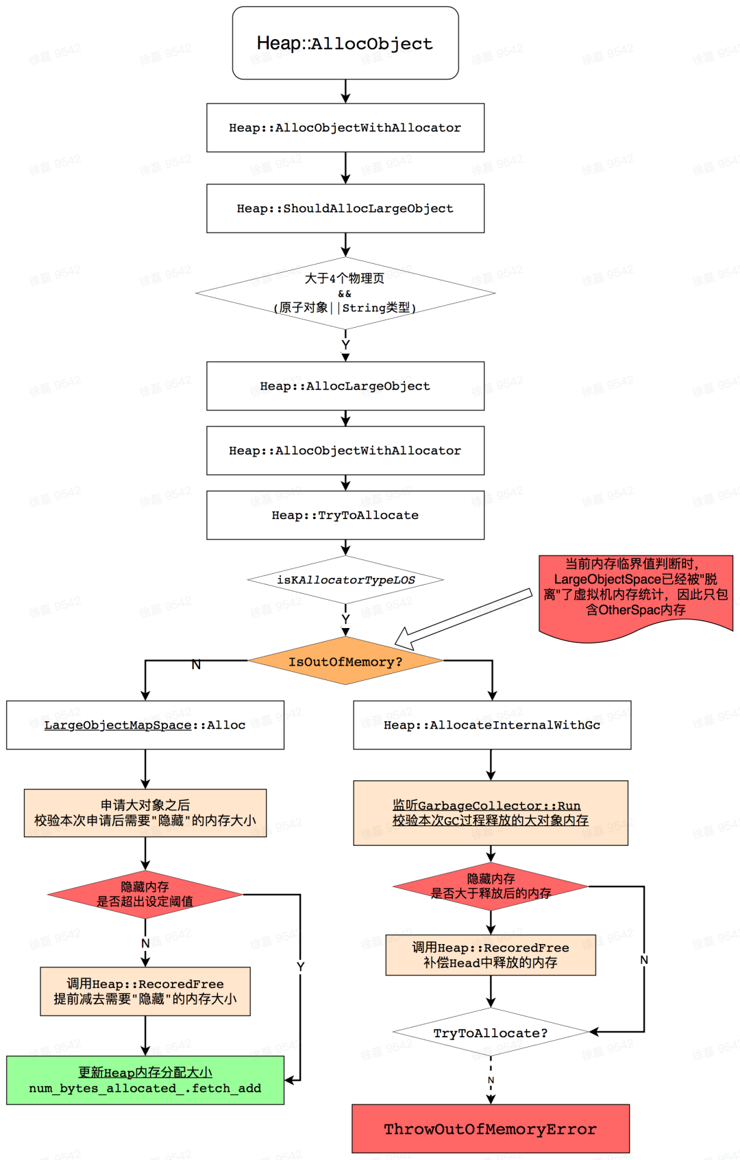 结合上图,可以看到 LargeObjectMapSpace 在内存申请过程中如要完成以下工作: