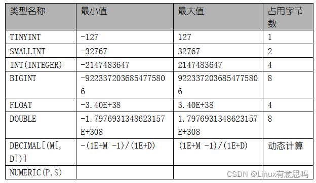 NUMERIC数据类型与DECIMAL数据类型完全等价。