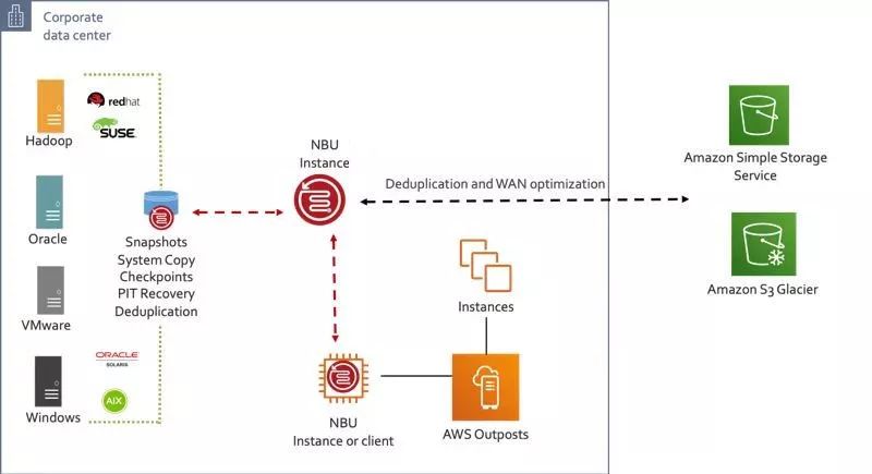 同期,Veritas第一时间宣布将支持AWS Outposts。Veritas已经对AWS Outposts进行了测试和验证:包括在AWS Outposts上部署NetBackup AMI,以及在AWS Outposts和Amazon S3之间为任务关键型应用程序备份和恢复工作负载。