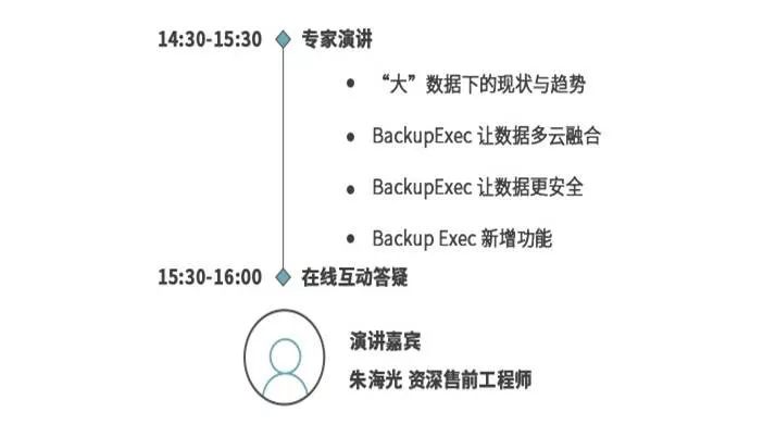 12月13日,Veritas诚邀您参加Backup Exec最新发布线上分享会。解析Backup Exec的简捷高效创新之道如何为您的数据和业务保驾护航。