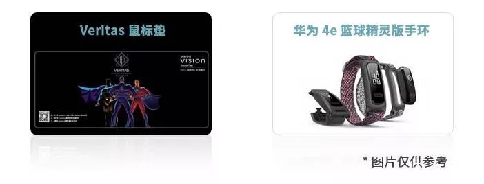 报名参会并填写问卷,即可领取Veritas鼠标垫并赢取华为4e篮球精灵版手环,先到先得: