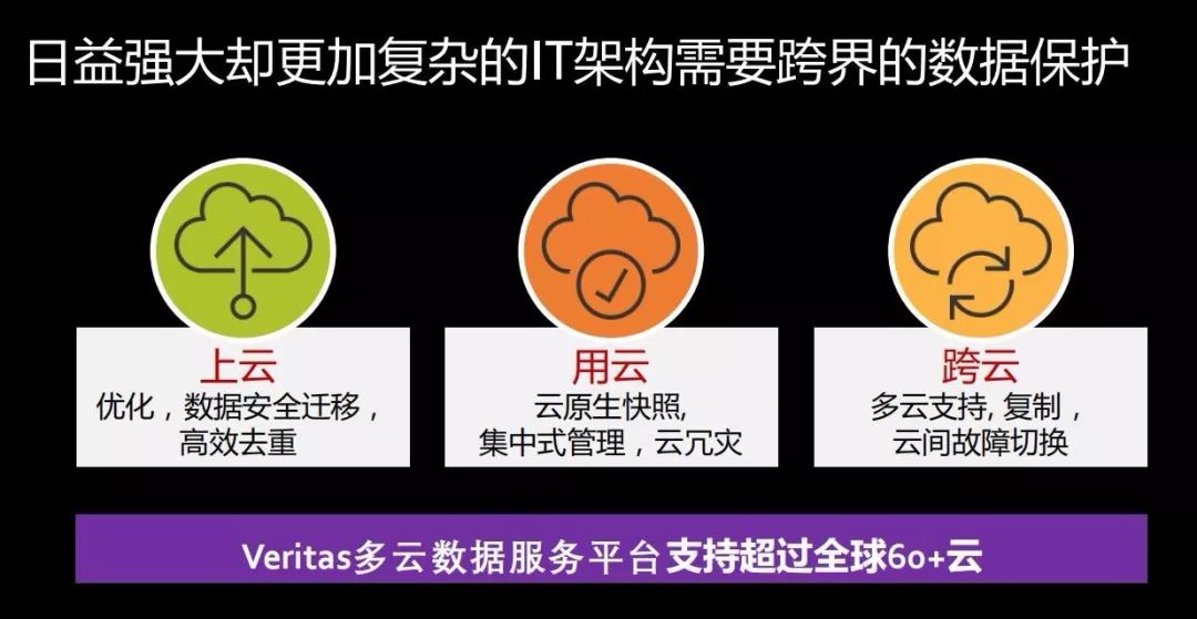 “以前,计算、存储都是在固定的环境中,计算不足了加计算,存储不够了加存储,都有固定的模式。但是现在,手机也能提供算力,云上也能提供算力,应用变得越来越复杂。”连智浩介绍说,“Veritas现在做的不仅仅是传统的备份,而是更广意义上的数据保护,核心是将数据和信息保护好。以前很多时候做完数据备份,数据就像被锁进了保险箱,成了沉睡的宝藏。现在,无论是为了满足合规、审计的要求,还是要实现更智能化的运维和运营,都要求唤醒那些沉睡的数据,实现更深刻的数据洞察,而且要更加快速的实现。在今天这样一个信息量爆炸性增长的环境中,如果还沿用以前的旧方法是没法满足用户需求的。”