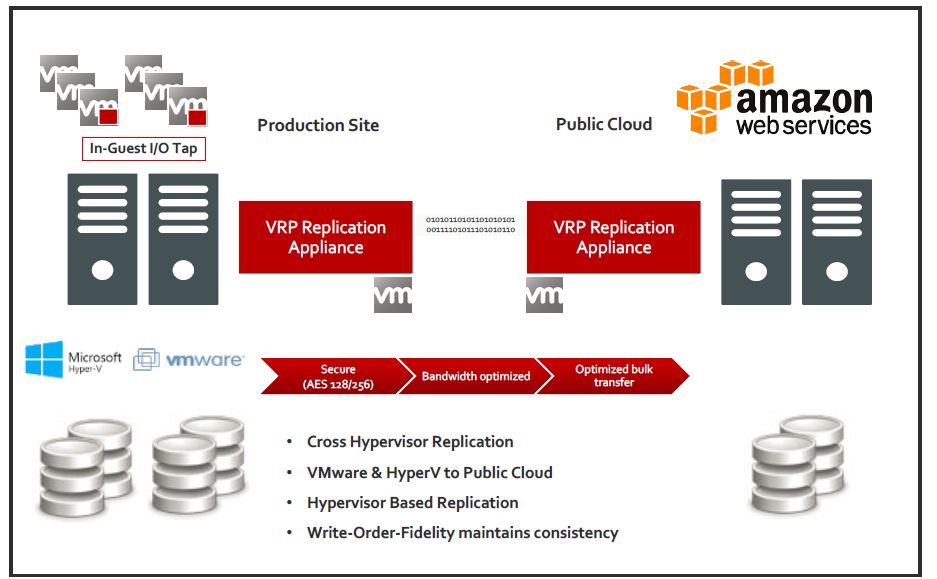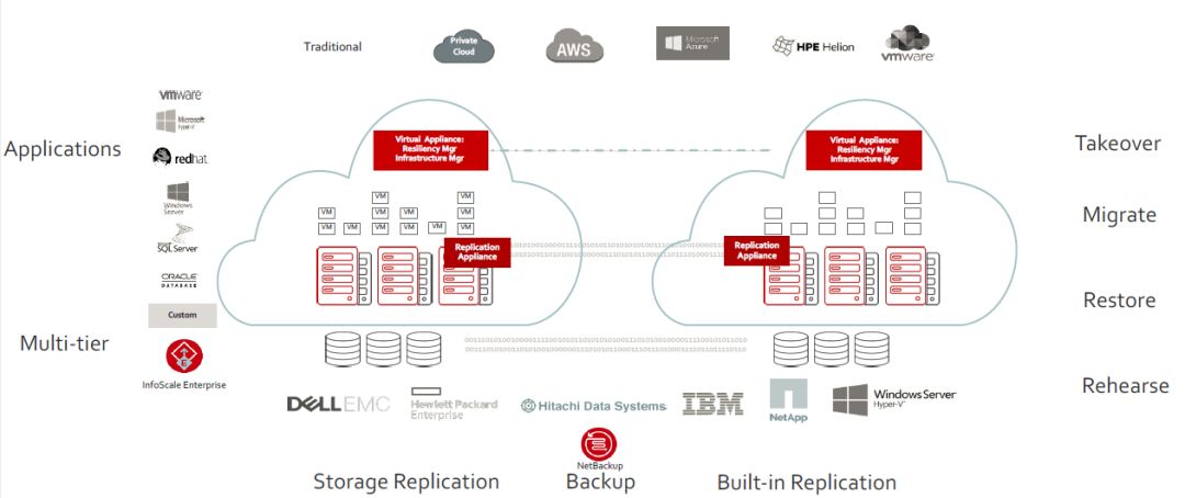 VRP具备三大核心特征:最主要的是跨平台(物理、私有云和公有云)支持;其次是应用容灾(支持应用的切换和编排);第三是Data Mover(使得VRP支持但不依赖第三方复制)。