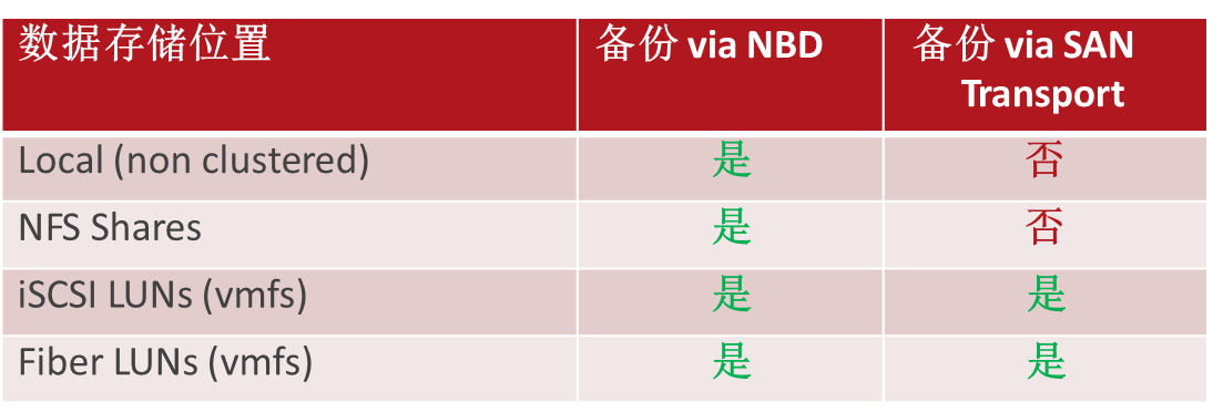 虚拟卷(vVOL) 和虚拟SAN (vSAN) 支持备份只能通过NBD 和HotAdd (BackupExec 虚拟化服务器)。